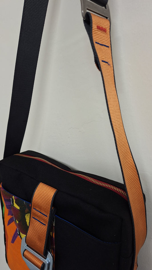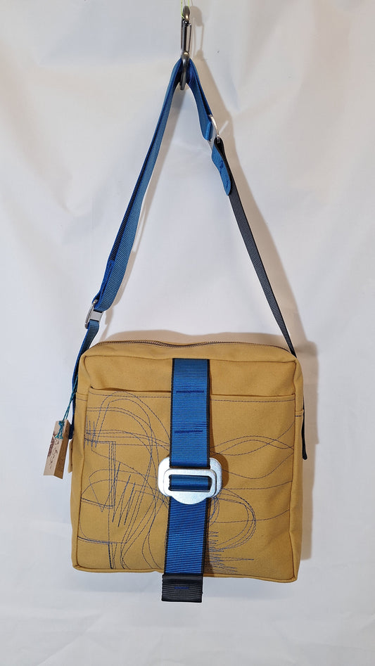 The bags are made using paraglider material for the linings, retired climbing harnesses for the straps and closures.